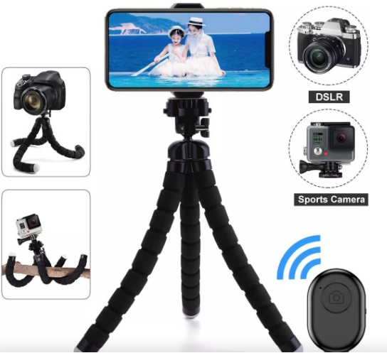 ==> Trípode flexible duradero y seguro: una junta esférica de alta calidad soporta teléfono/cámara de hasta 2.2 lbs, bloquea el smartphone más pesado en posición segura. Y con patas de estilo pulpo flexibles y envolventes y almohadillas de goma antideslizantes, este trípode ajustable no solo es un excelente mini trípode en superficie plana, también puedes doblarlo y girarlo 360 grados para cualquier lugar que puedas imaginar, como postes de lámpara, postes de cerca, extremidades de árbol, sillas, etc. pomos, etc.